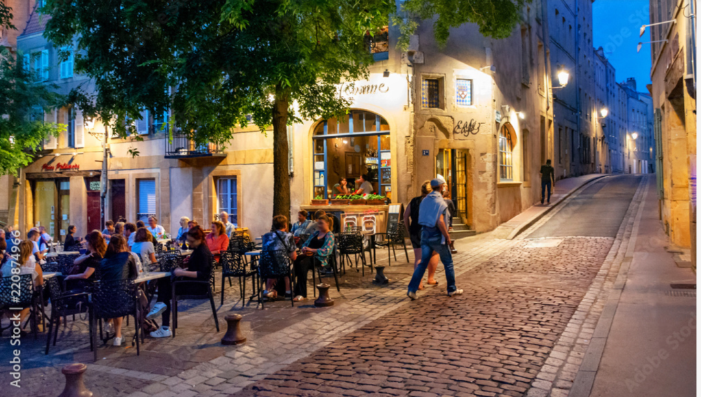 Ils sont arrivés rue Bamberger. Le soir, on allait avec mes parents à la Jeanne. Les terrasses de Metz. On rentrait à pied, tard. C’était déjà ça, ce que je ferai un peu plus tard de mes soirées d’étudiante. Le goût du déjà, avant le déjà-vu.